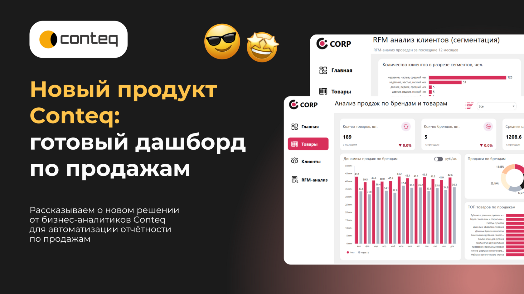 Рады сообщить, что компания Conteq представляет новый продукт от наших бизнес-аналитиков — готовый дашборд для анализа продаж, который позволяет запустить аналитику продаж в вашем предприятии без необходимости разработки с нуля.